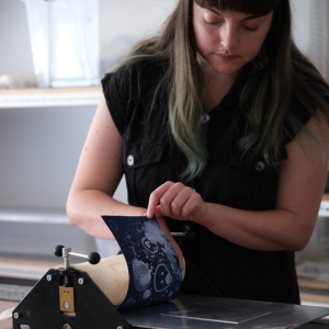 She holds a Masters by Research in Printmaking (UniSA) with a focus on eco-aware printmaking materials and processes and has also undertaken research in this field at Zea Mays Printmaking (USA).